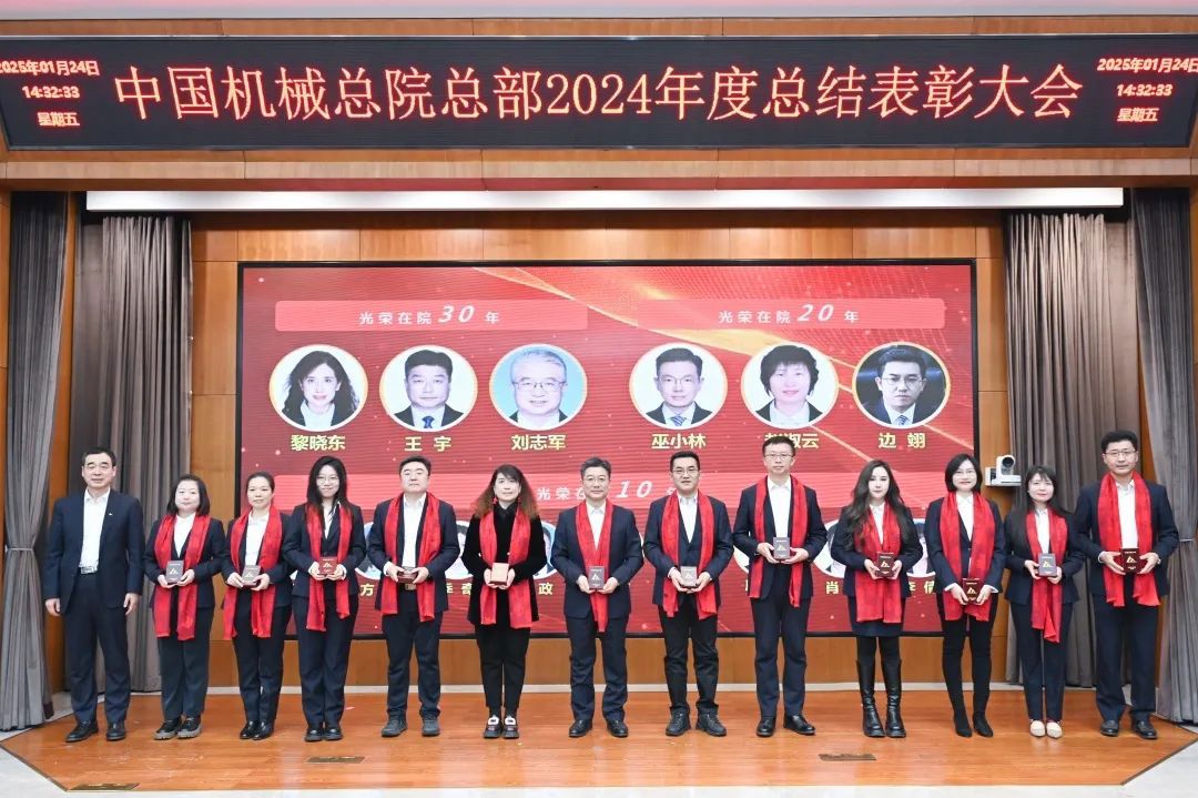 大會現(xiàn)場氣氛喜慶熱烈?!对鲂刨x能 攜手同行》短片,回顧2024年豐碩成果、展望2025年發(fā)展前景。各部門以視頻方式送來新春祝福。大會向光榮在院30年、20年、10年的干部職工頒發(fā)紀念章;對涌現(xiàn)出的先進集體和優(yōu)秀個人進行了表彰。集團領(lǐng)導(dǎo)為獲獎代表頒獎,獲獎代表感言分享成長喜悅、表達美好祝福。