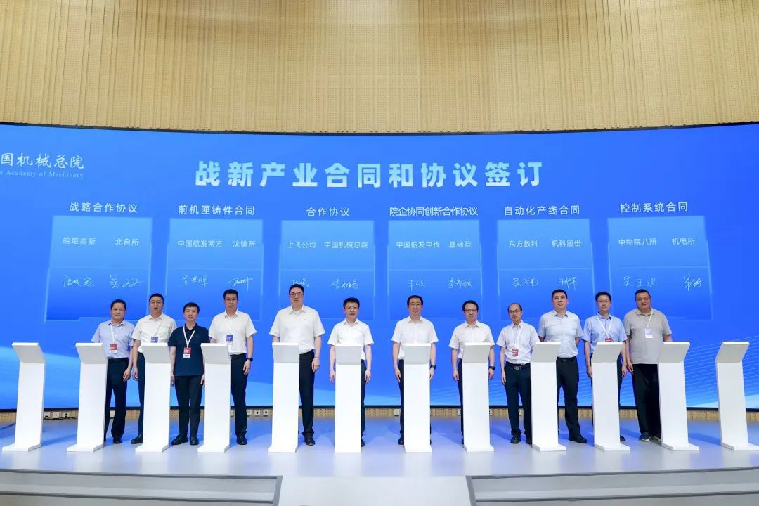 會上,中國機械總院集團及所屬公司沈鑄所、北自所、機電所、機科股份、基礎院、海西分院、寧波機床院、云南院等單位分別與中國商飛上飛公司、皖維高新、中國航發(fā)南方、中國航發(fā)中傳、東方數(shù)科、中物院八所、萬向錢潮、科德數(shù)控、云南錦潤、福州市晉安區(qū)政府、重慶兩江新區(qū)等12家企業(yè)和地方政府簽署戰(zhàn)新產(chǎn)業(yè)合同及協(xié)議。
